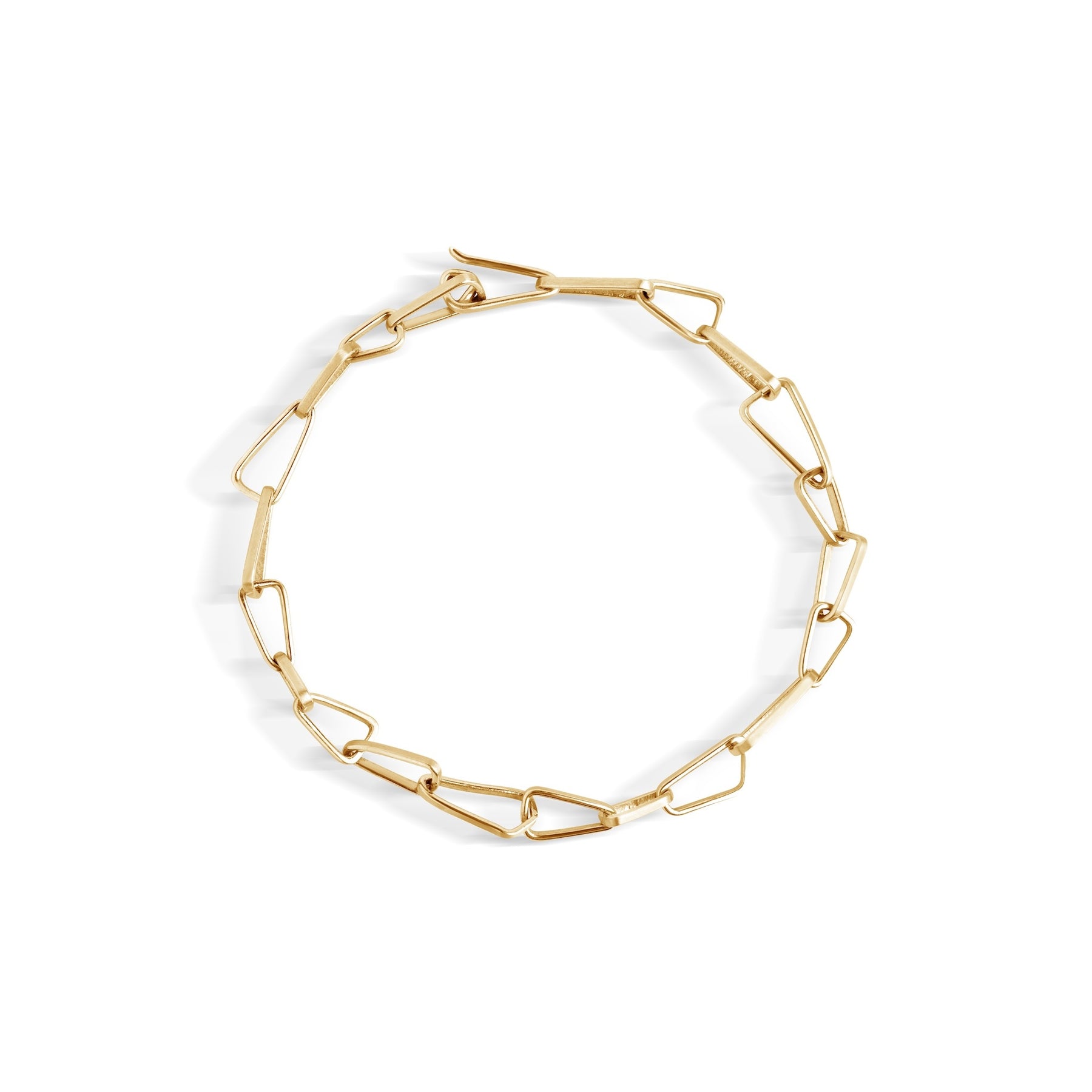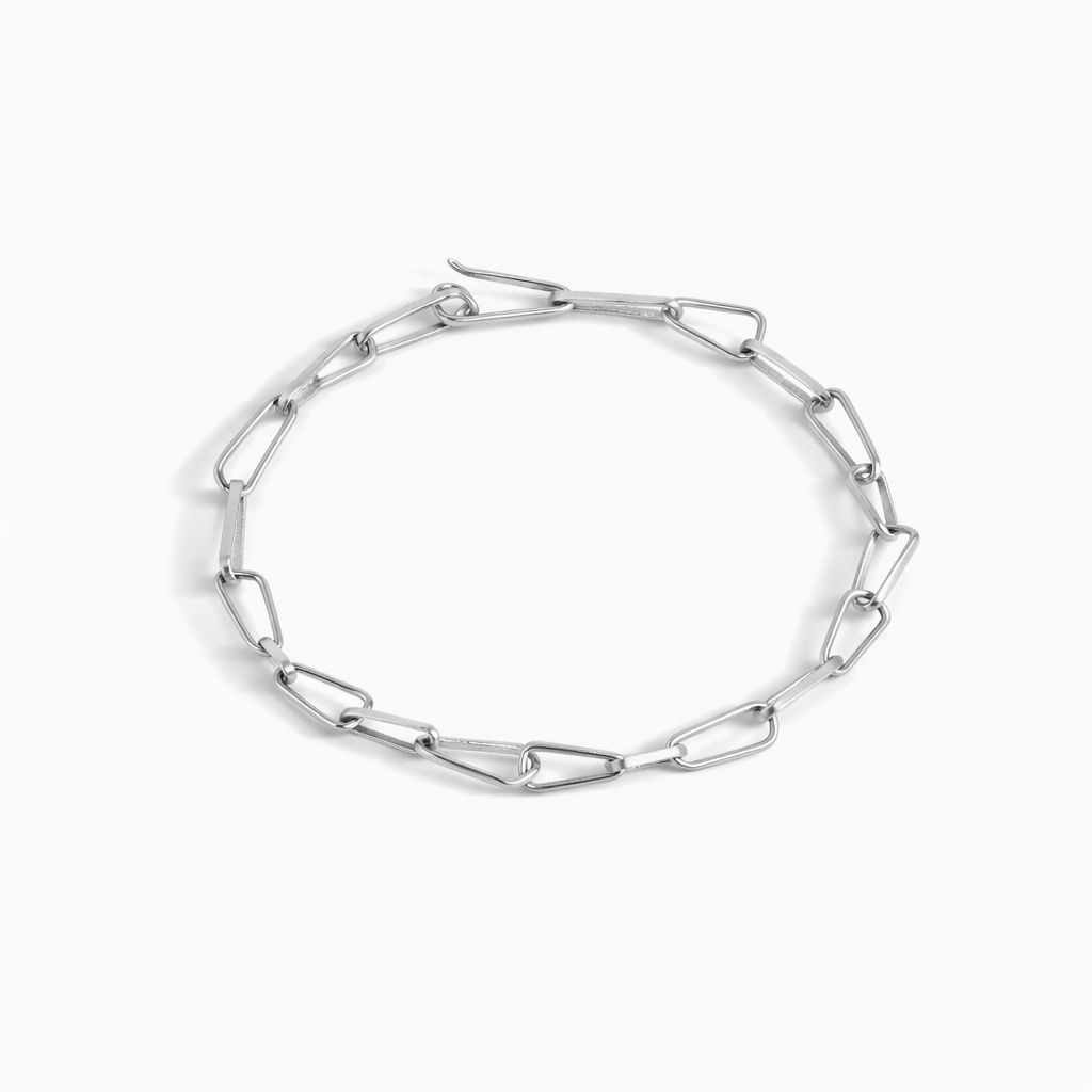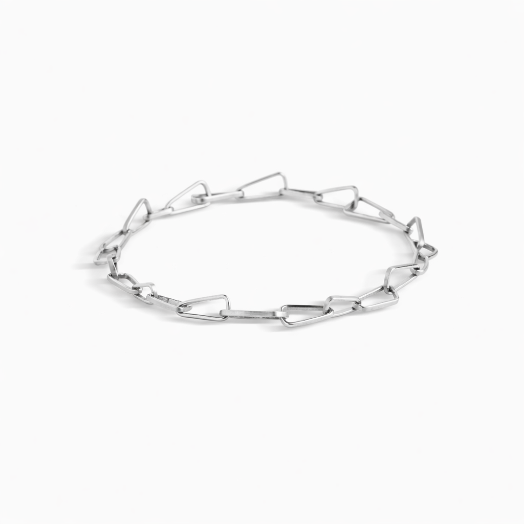• Handgefertigte Glieder — jedes Stück einzeln gefertigt für feminine Kantigkeit ohne Härte